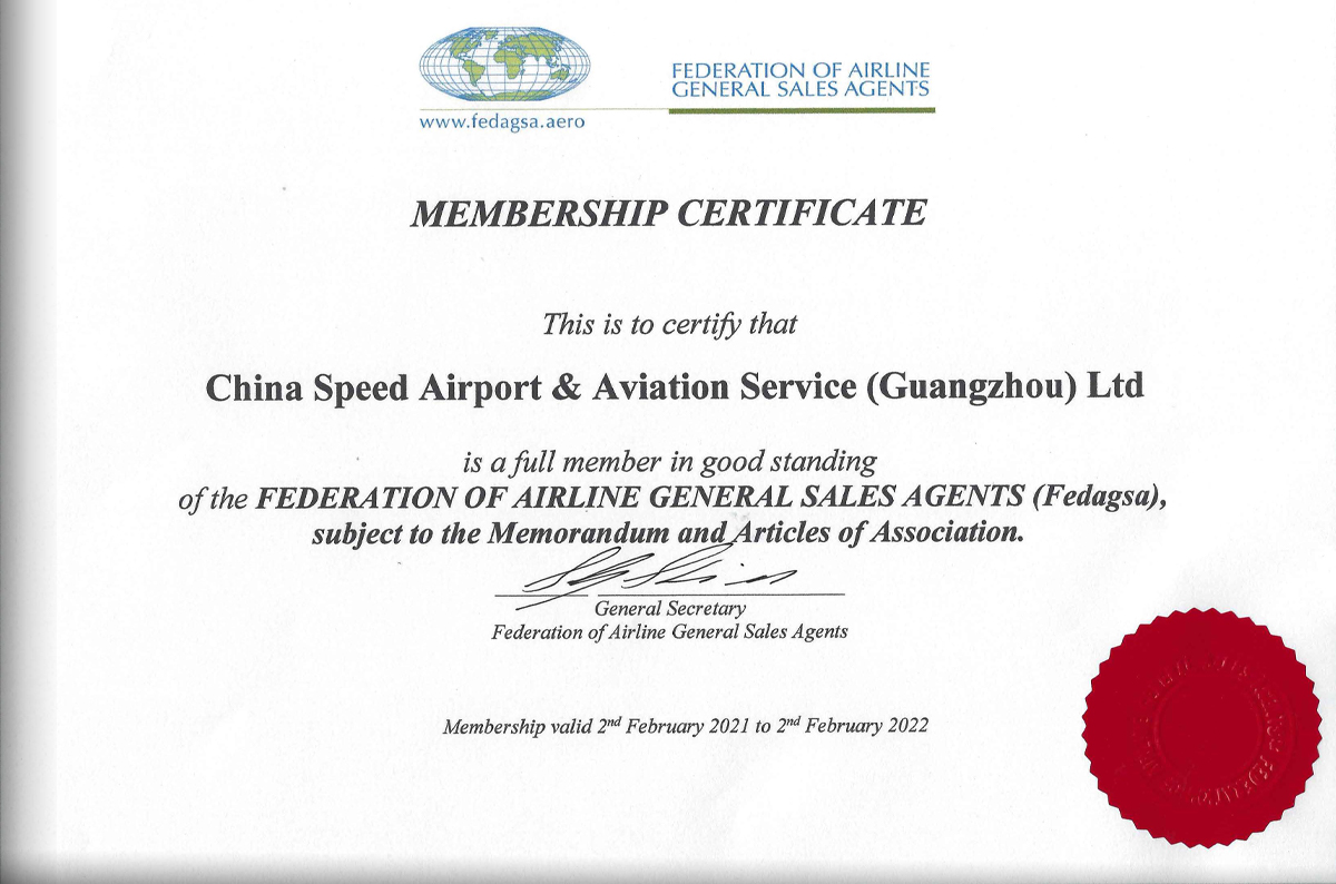 CSAA is certified as the Federation of Airline General Sales Agents